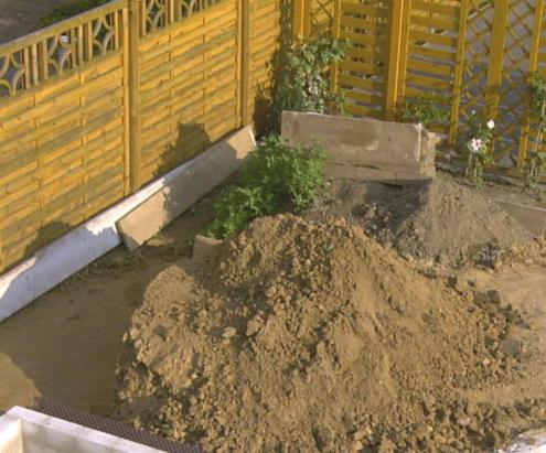 Bilck vom Balkon, Kies ist angefüllt, nur der Bioteich fehlt noch.